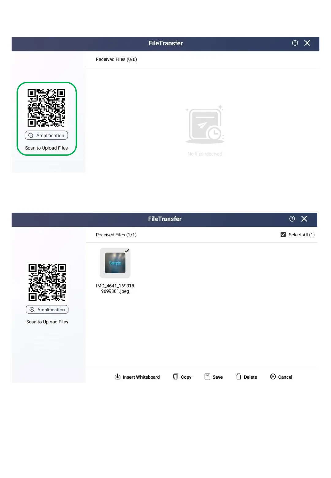 Scan the QR Code with an external device and upload multiple files from the external device immediately.