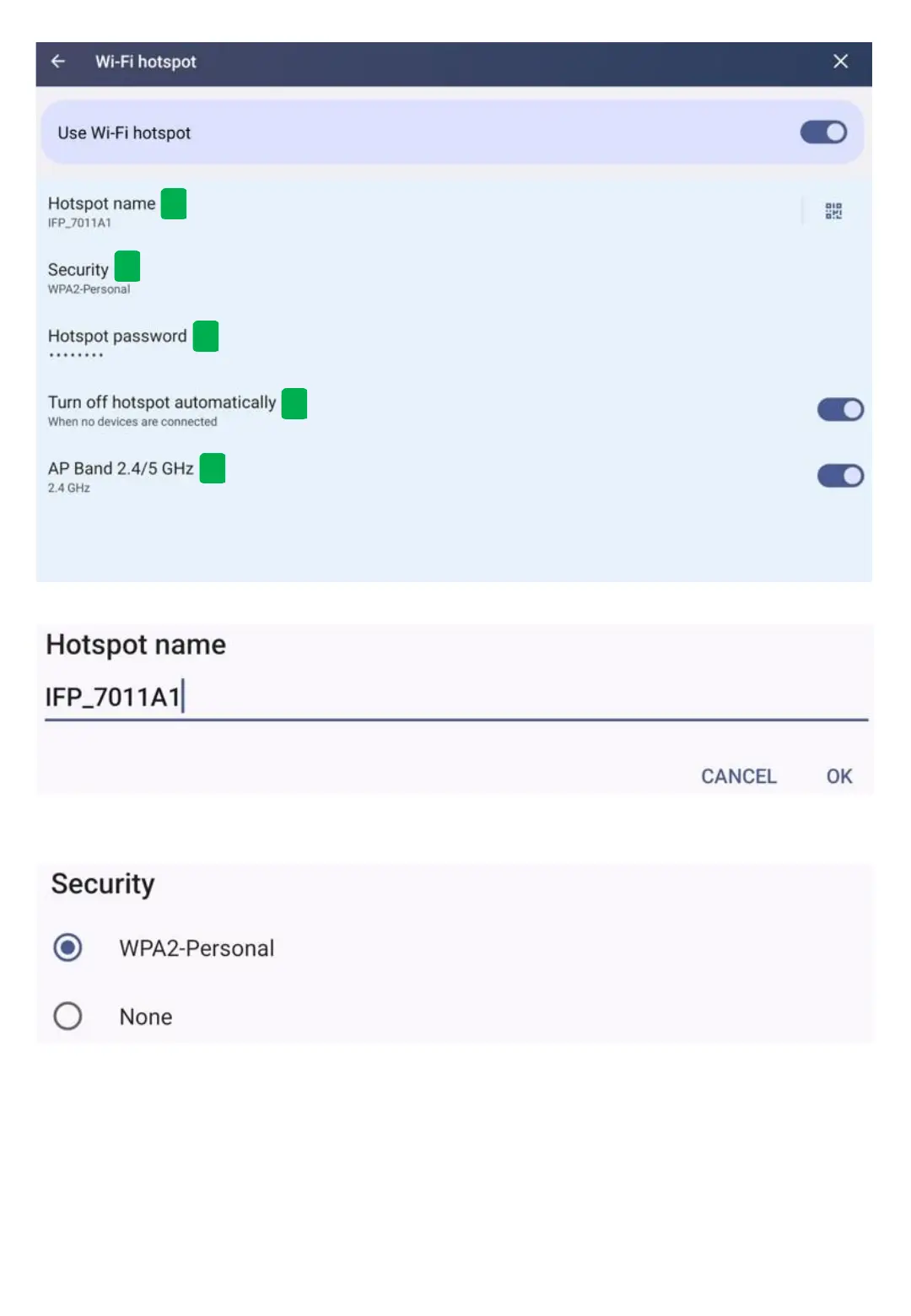 Users can change the name of the hotspot when you select the Hotspot name section.