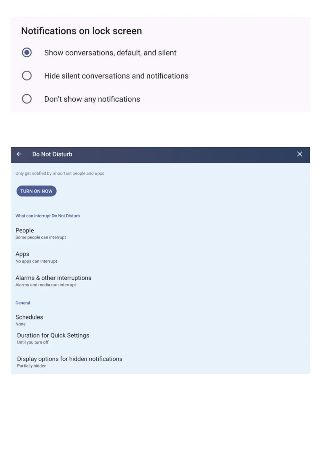 Select manu, show all conversations and default and silent notifications, hide silent conversations and