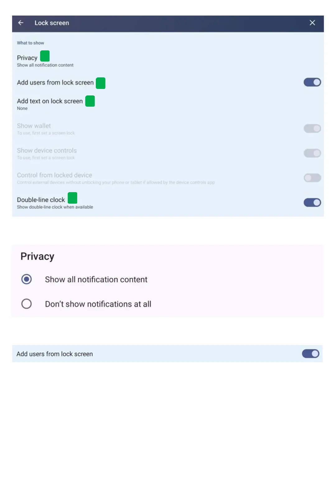When select the Privacy menu, users choose whether to display notifications IFPD is on the lock screen.