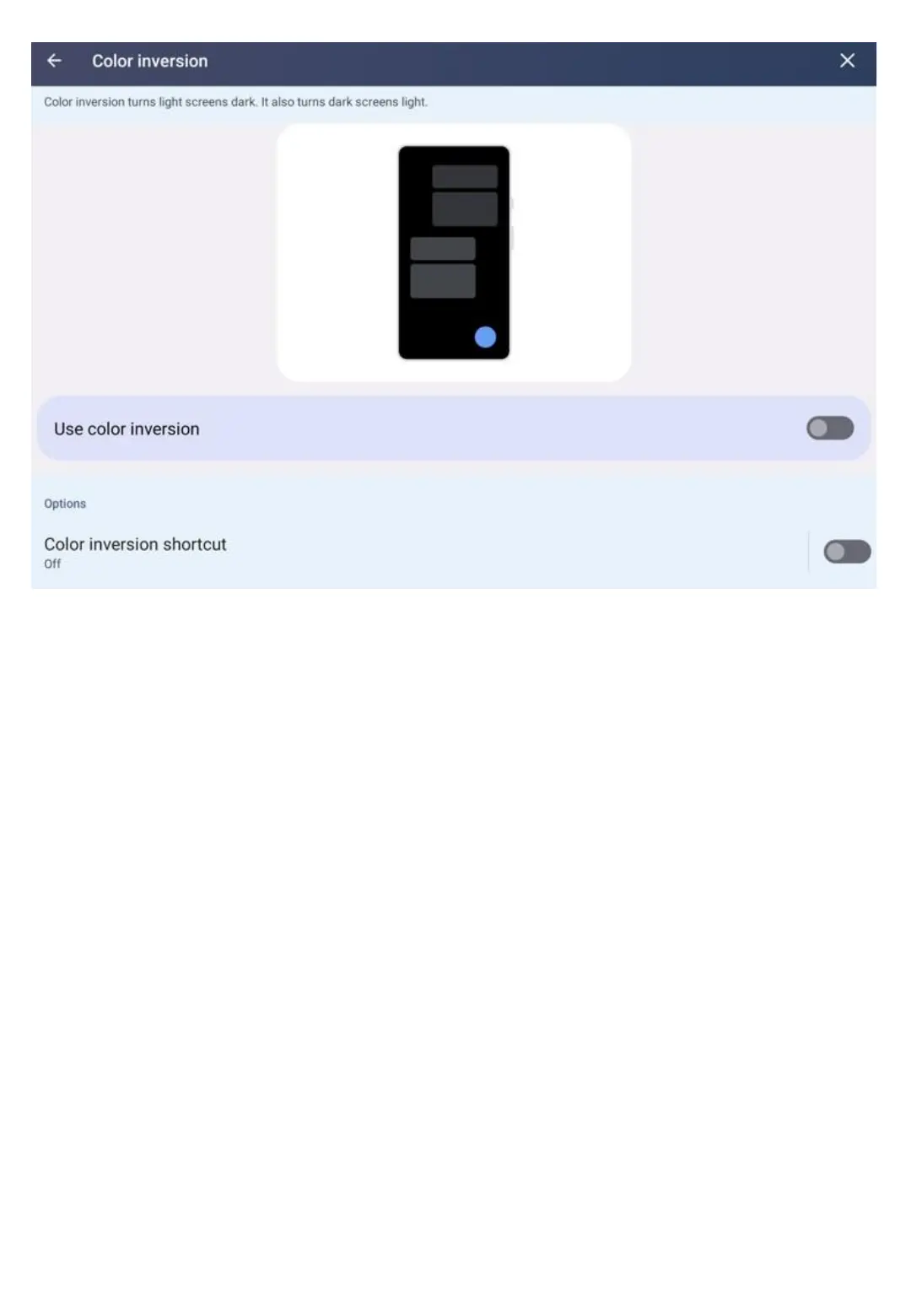 The color inversion function changes light colors to dark colors and dark colors to light colors.