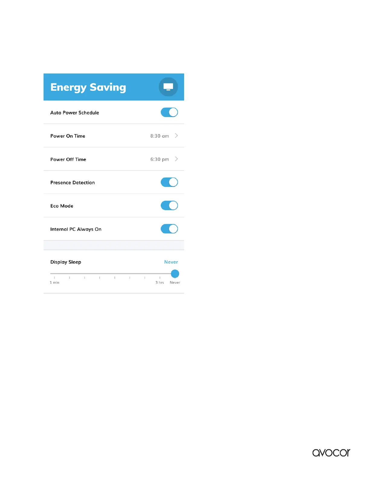 ➢ Eco Mode: toggles on to enable an Energy Star®