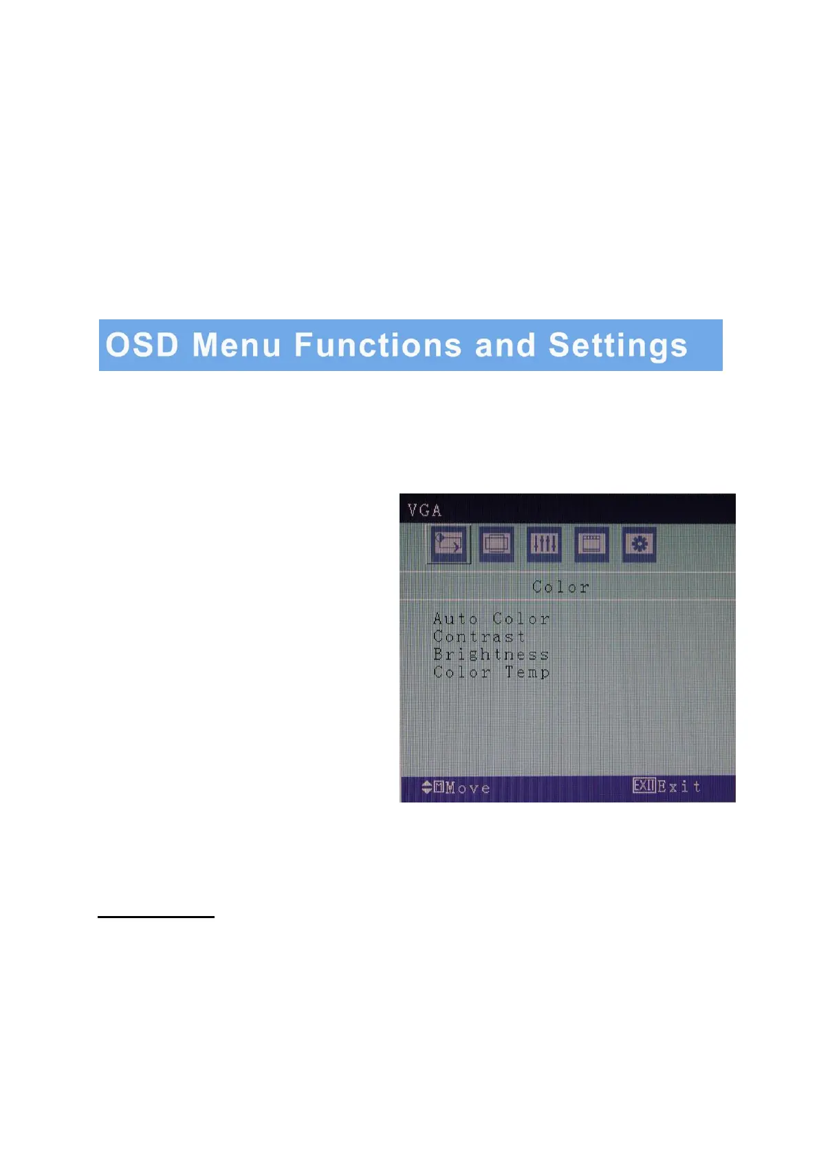 2. OSD setup under VGA input mode