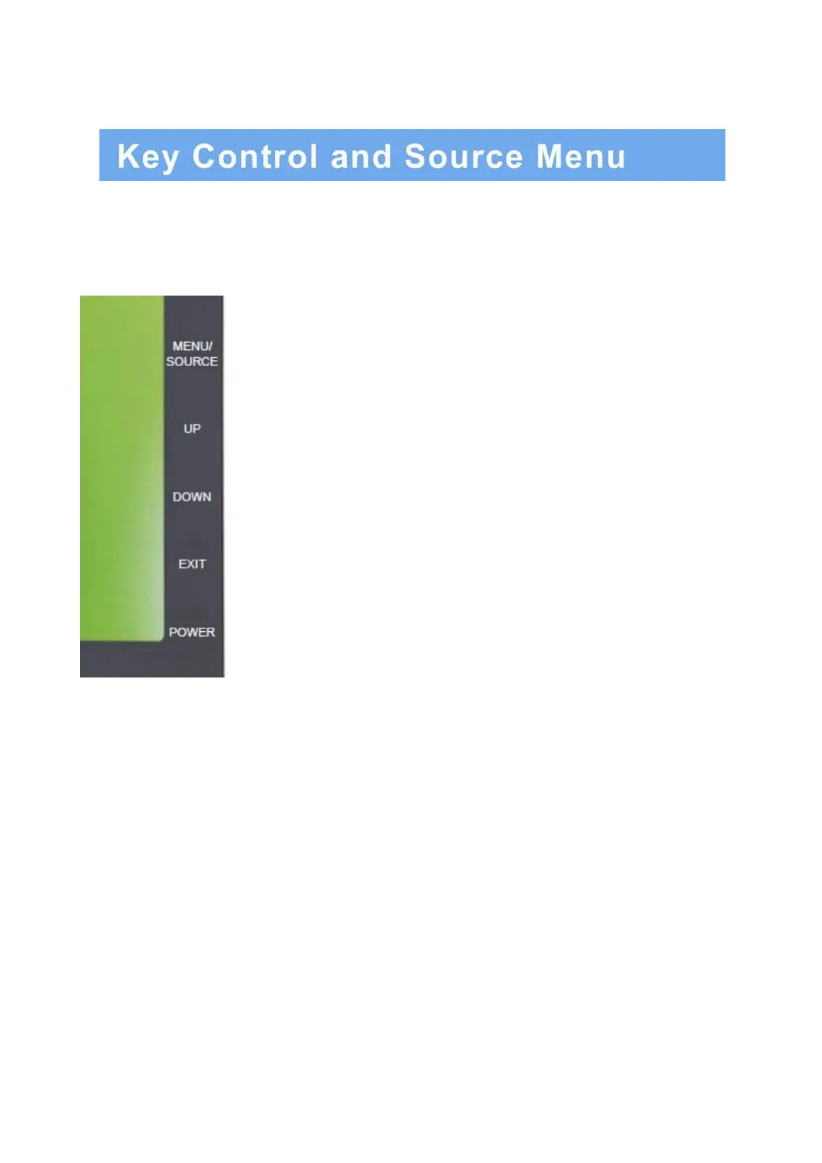 1. Menu/Source: Opens the OSD and steps down on the OSD. Also, the