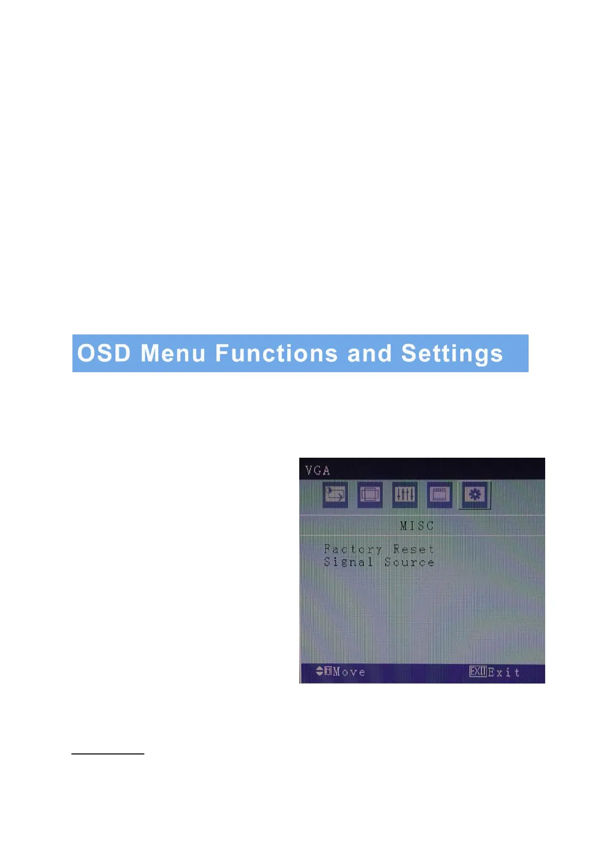 2. OSD setup under VGA input mode (continued)