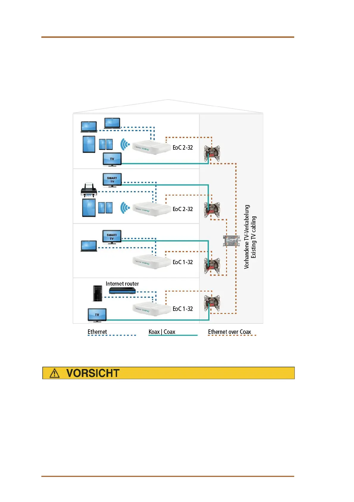 Die Gerätetypen EOC 1-32 und EOC 2-32 dürfen in einem CATV-Netz nur eingesetzt werden, wenn der