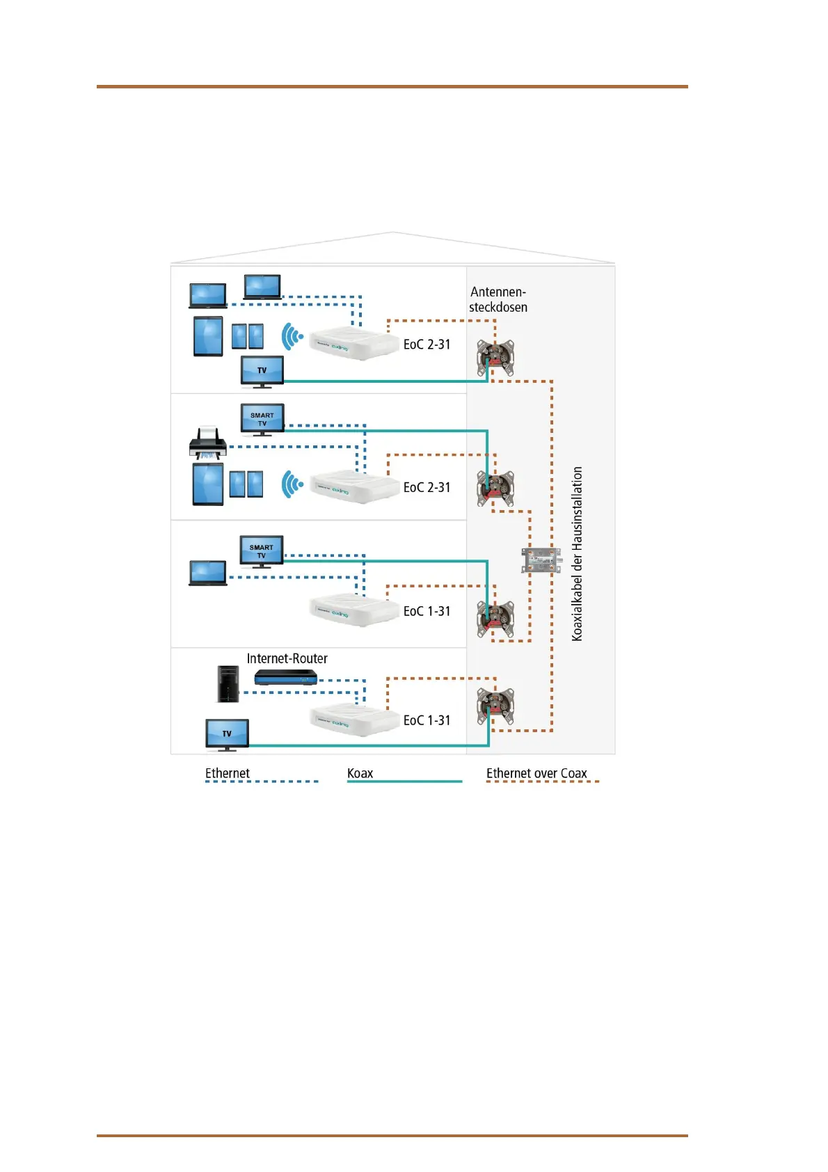 Die EOC 1-31 und EOC 2-31 bauen mit Hilfe des G.hn-Standards ein Ethernet-over-Coax-Netzwerk über die