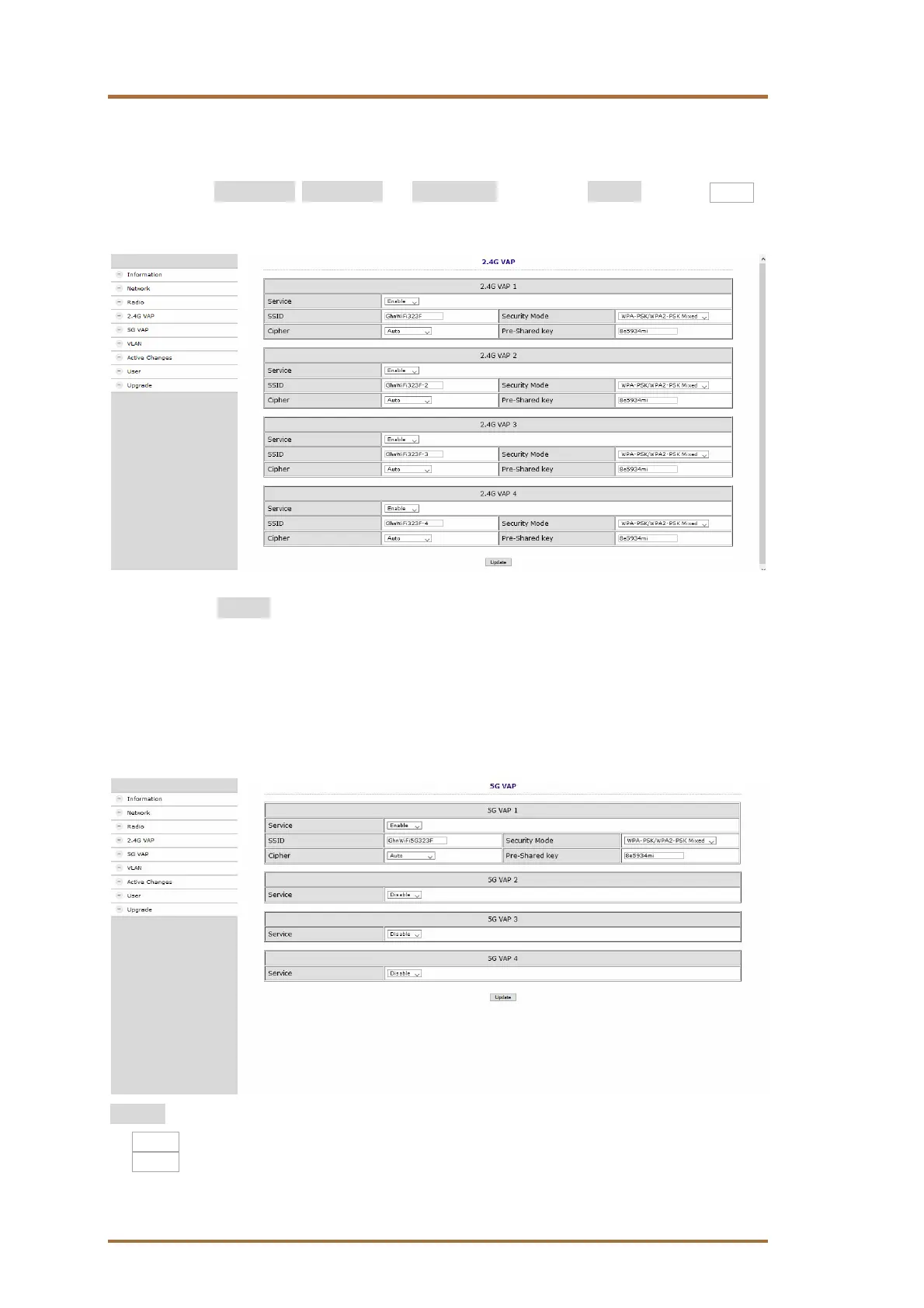 Wählen Sie unter 2.4G VAP 2, 2.4G VAP 3 und 2.4G VAP 4 jeweils im Feld Service die Option Enable.