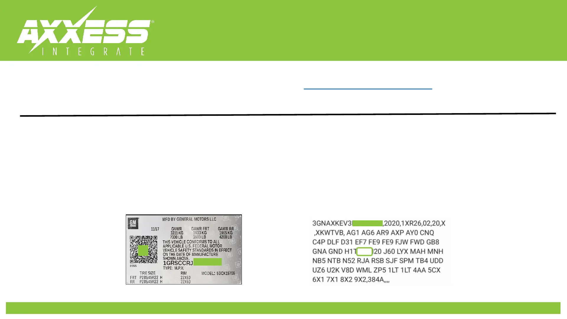 It is recommended that the RPO code is double check to confirm application. The RPO Codes can be found on a placard labeled “Service