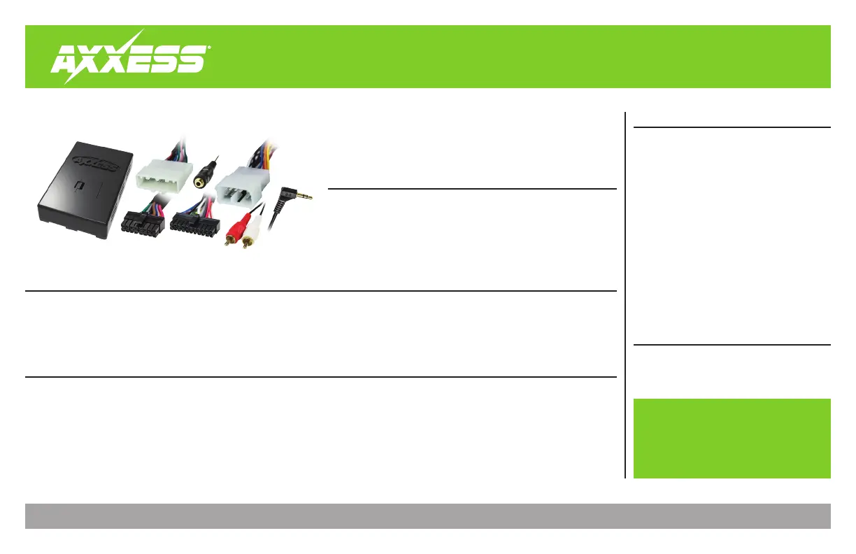*Visit AxxessInterfaces.com for up-to-date vehicle specific applications.