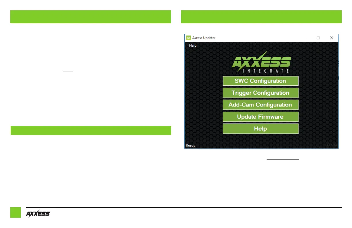 • Open the Axxess Updater and wait until the word Ready is listed in the bottom left of the screen.