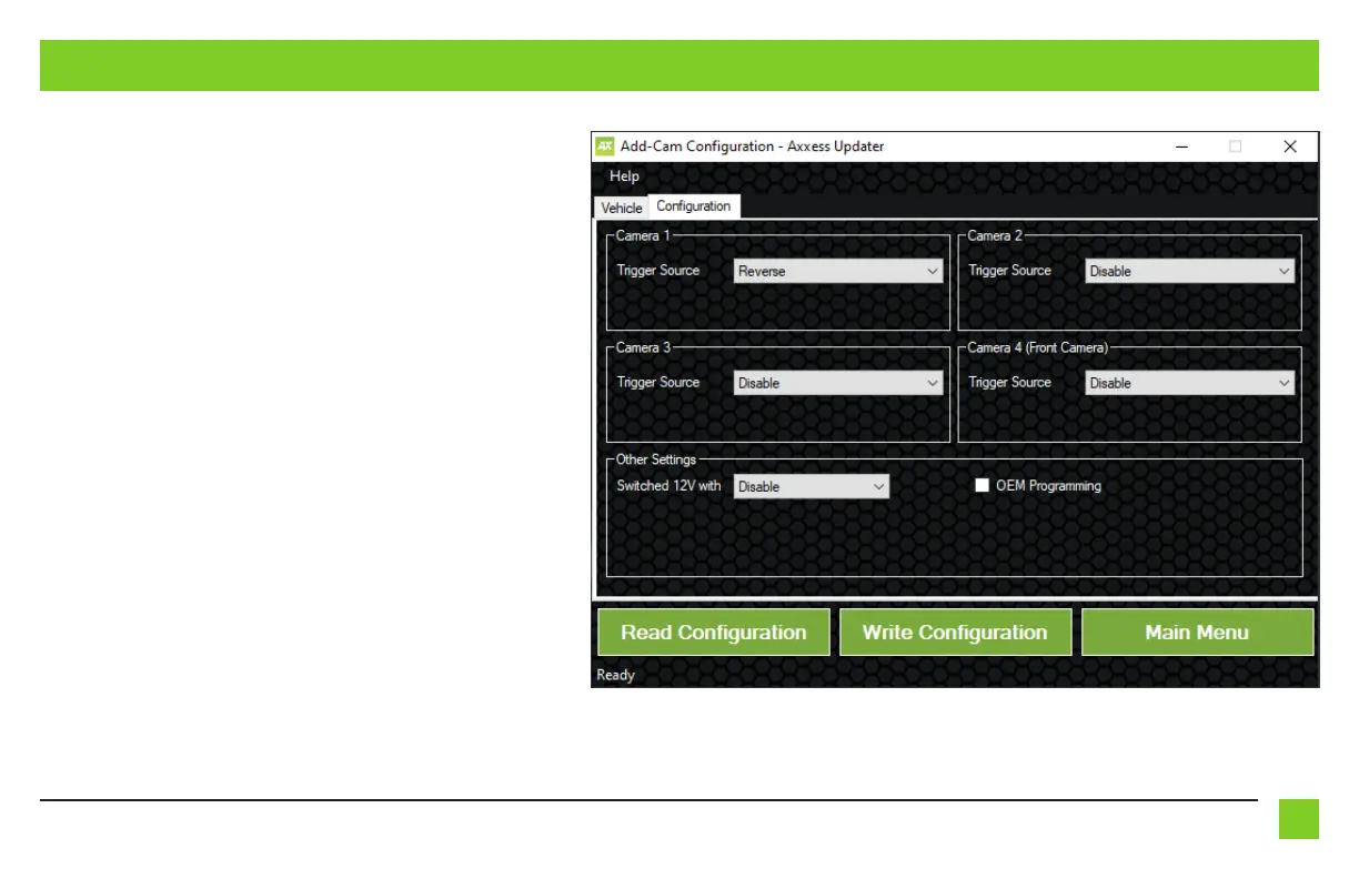 box to allow the AXAC-FD1 to configure the camera settings for the vehicle.