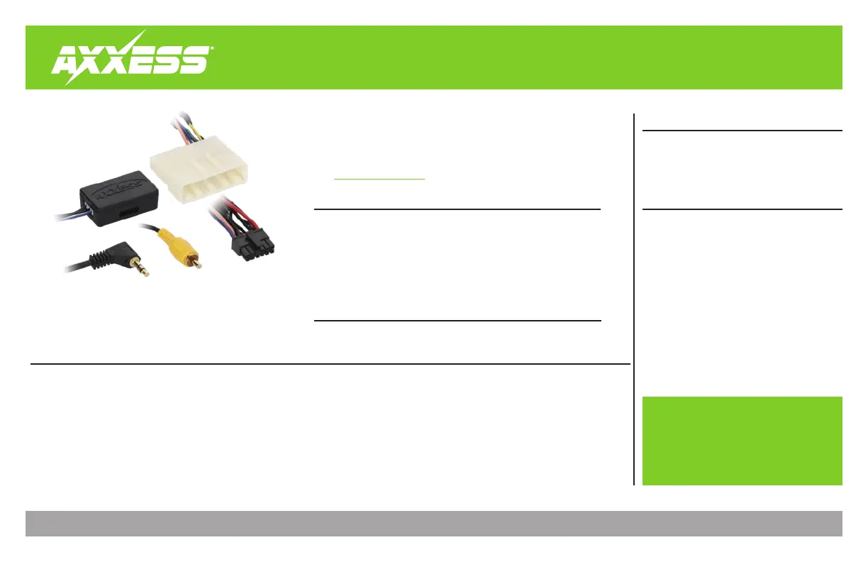 Visit AxxessInterfaces.com for vehicle specific applications.