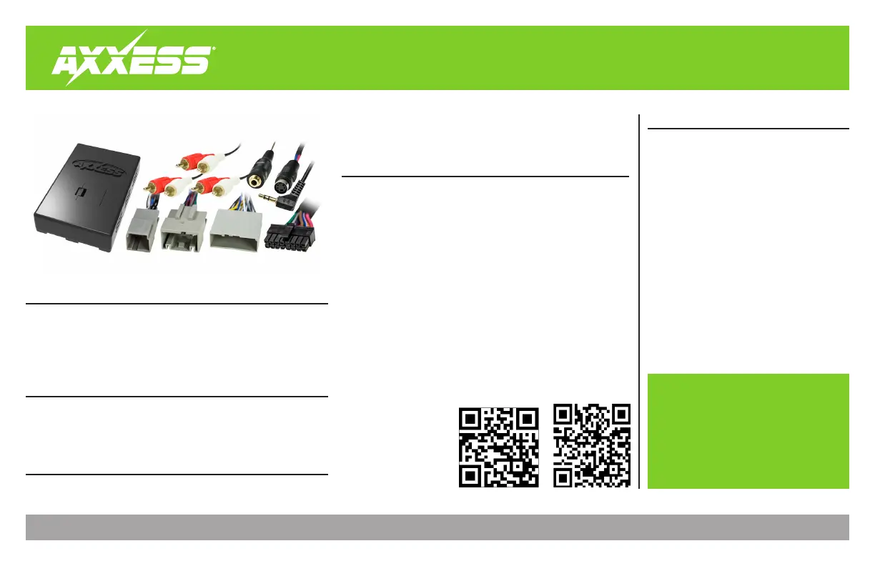 Visit AxxessInterfaces.com for up-to-date vehicle specific applications.