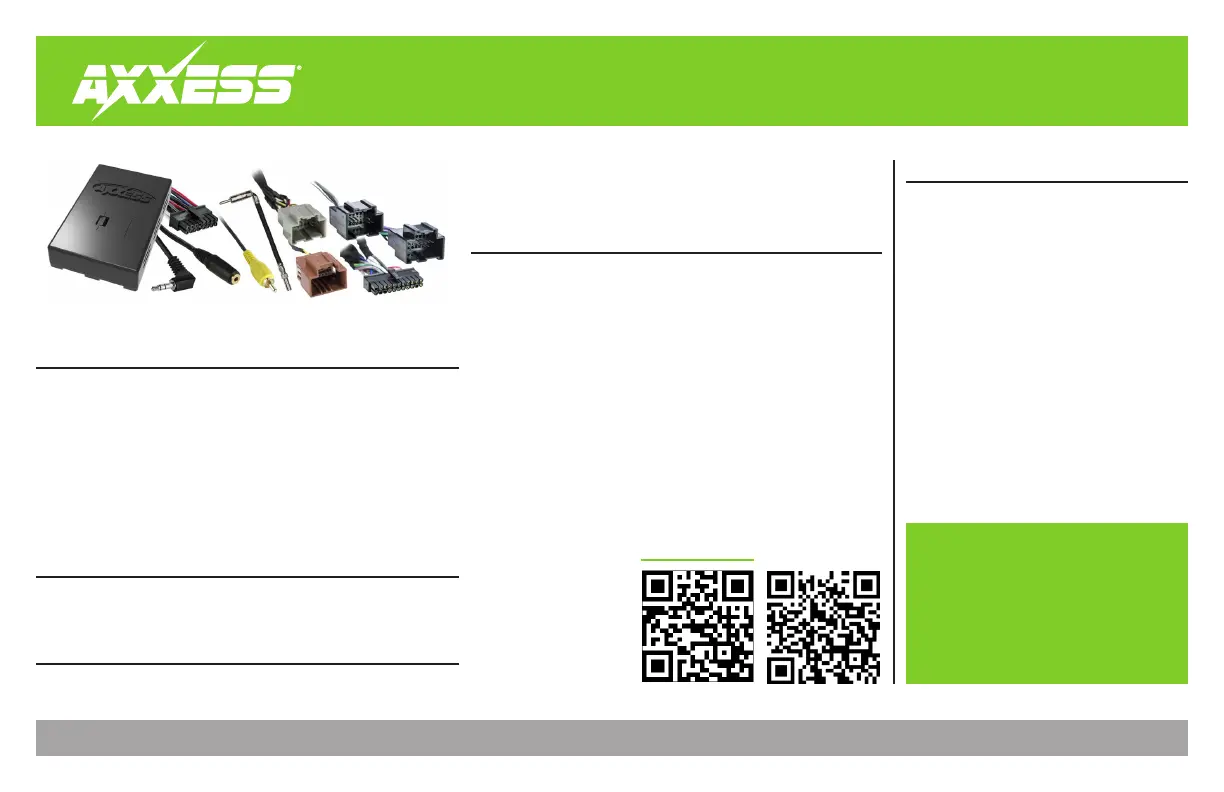 Visit AxxessInterfaces.com for up-to-date vehicle specific applications.