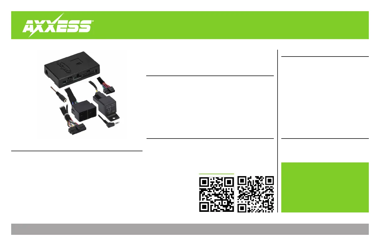Visit AxxessInterfaces.com for up-to-date vehicle specific applications.