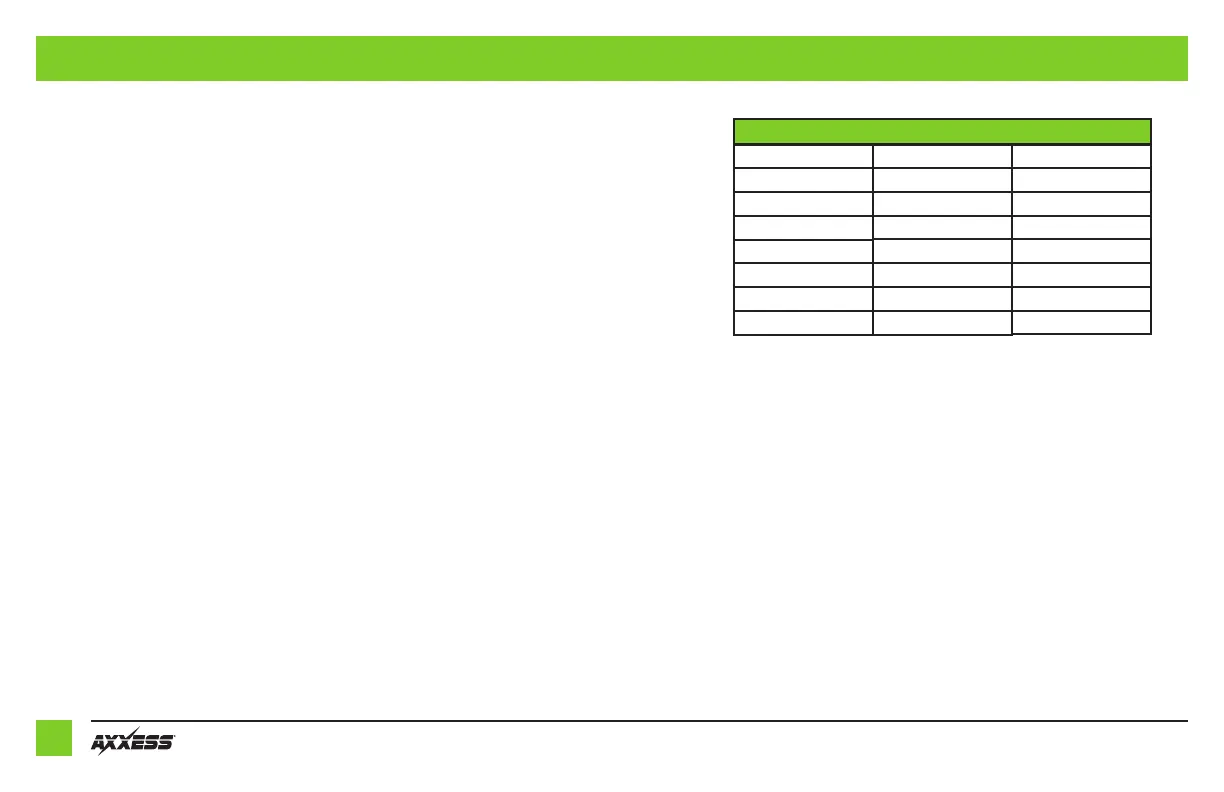 The Axxess Updater App can also be used to program the following (3) sub-sections as