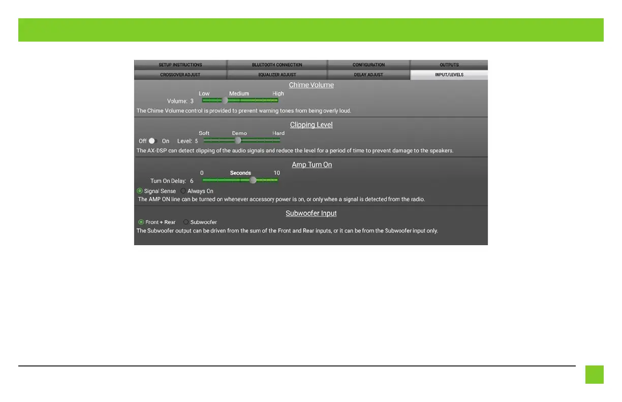 • Clipping Level - Use this feature to protect sensitive speakers like tweeters from being