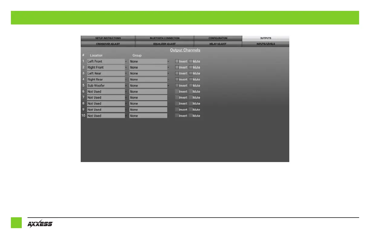 • Mute - Will mute desired channel(s) for tuning individual channels.
