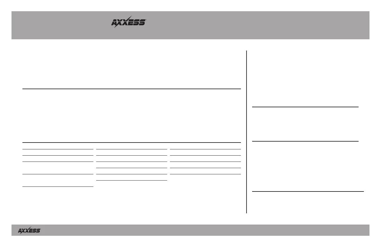 Bekijk gratis de handleiding van Axxess AXGMLN-08, stel vragen en lees de antwoorden op veelvoorkomende problemen, of gebruik onze assistent om sneller informatie in de handleiding te vinden of uitleg te krijgen over specifieke functies.
