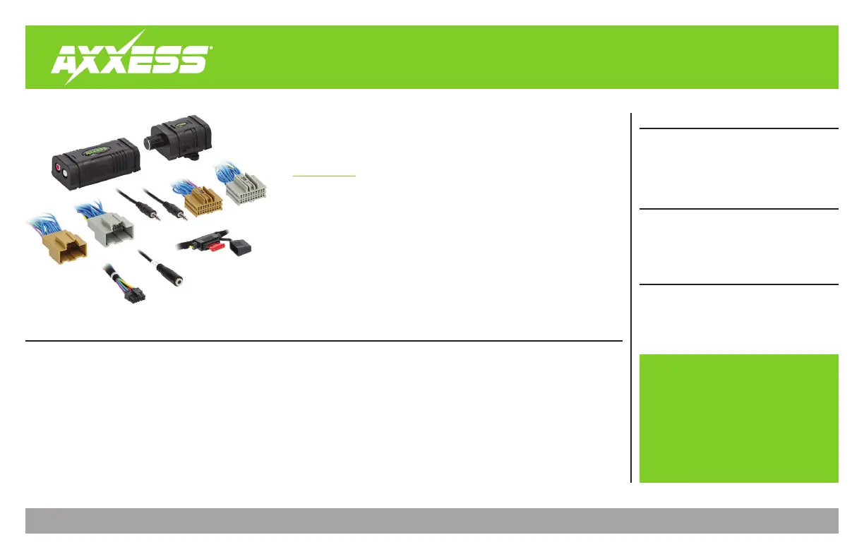 Visit AxxessInterfaces.com for more detailed information about the product and up-to-date vehicle specific applications