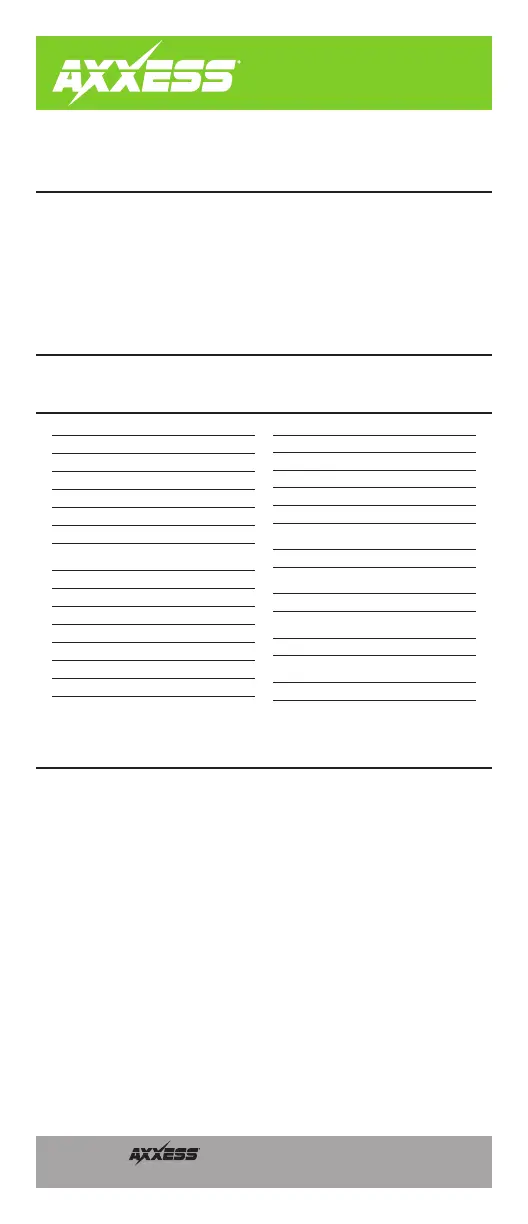Bekijk gratis de handleiding van Axxess AXRSEH-GL29, stel vragen en lees de antwoorden op veelvoorkomende problemen, of gebruik onze assistent om sneller informatie in de handleiding te vinden of uitleg te krijgen over specifieke functies.