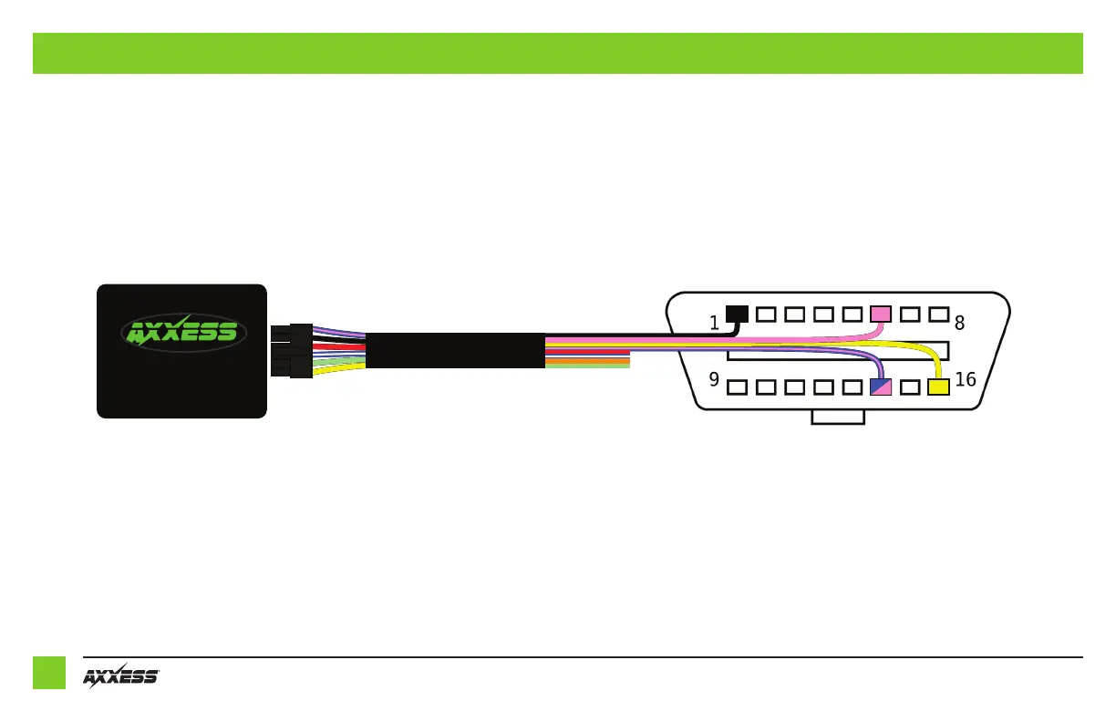 From the AXSSO harness to the wiring harness at the OBD connector: