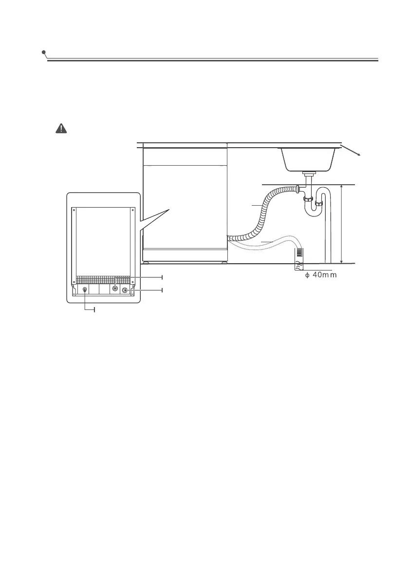 bottom of the dish. The water drain hose should be fixed .