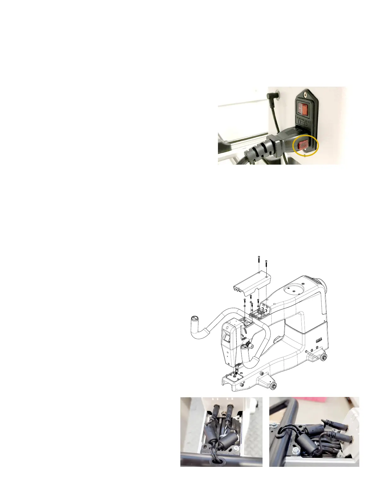 •   Insert the plug into the power connector on the rear of the machine. Plug the three-prong plug end