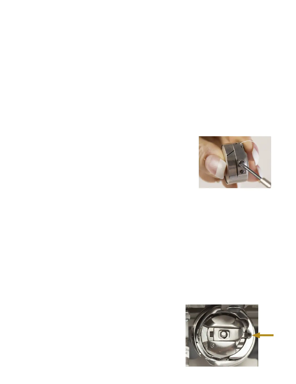 1. With the bobbin properly in the bobbin case, hold the bobbin case in the palm of your hand