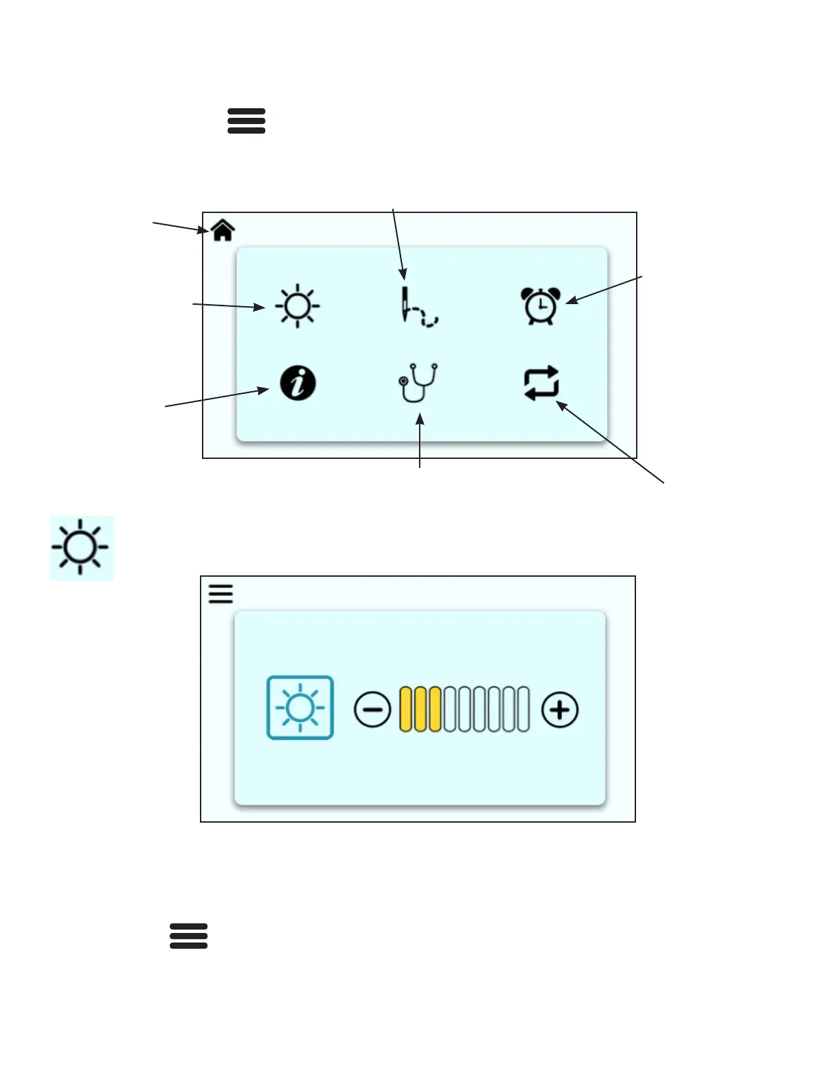 Press the Plus icon (+) to increase the brightness of the light. Press the Minus icon (–) to decrease
