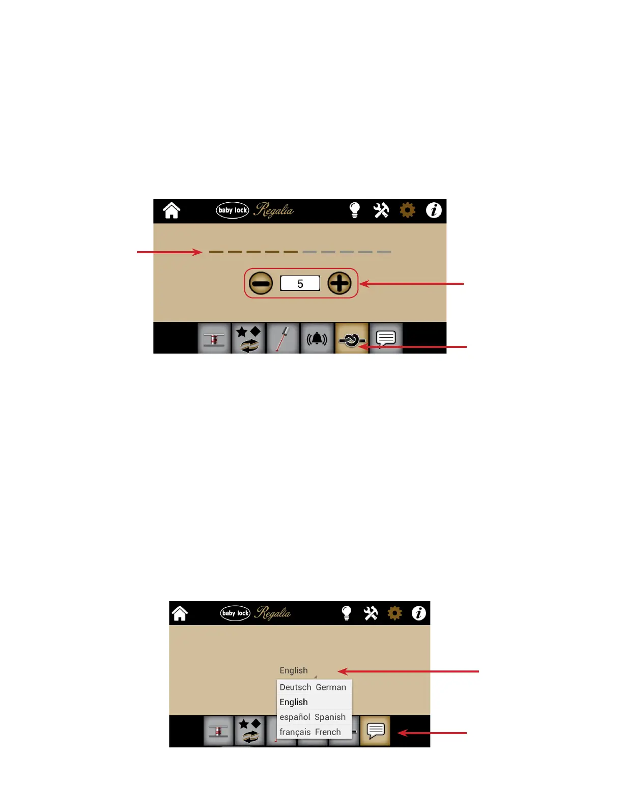 • Touch the Sengs icon in the Toolbar. Then touch the buon to set the language. Press the