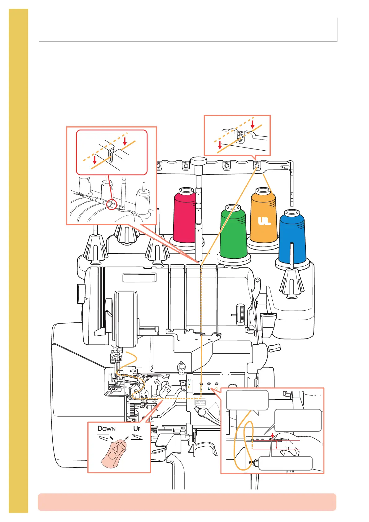 Upper/ Lower/ Chain looper Threading Port Set Up-Threading). Thread the upper looper follow