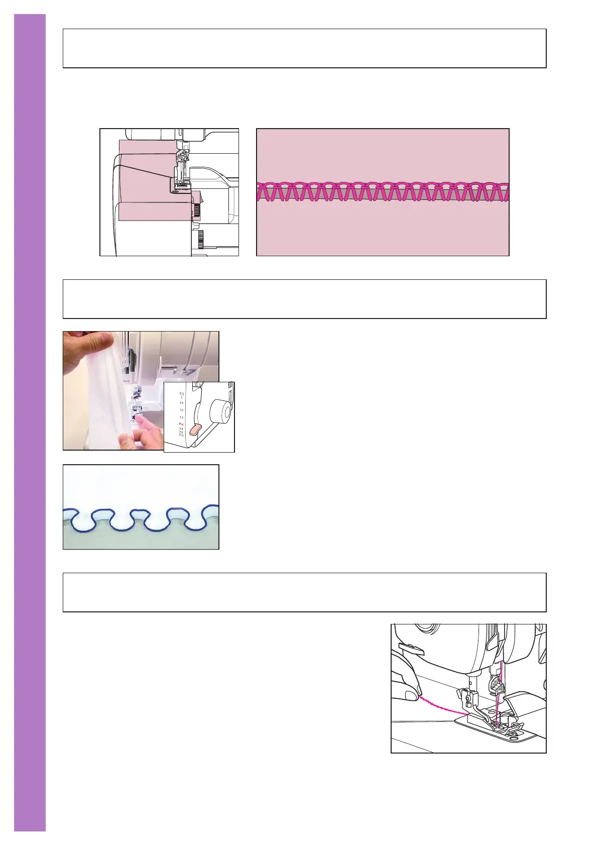 Use the 3-thread edge (rolled hem) setting when sewing sheer fabrics. Set the stitch length at 2.5.