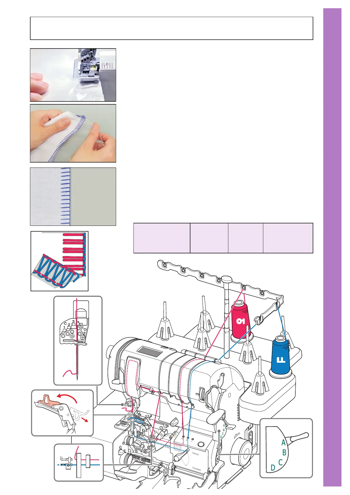 Set the machine up for 2-thread flatlock wide. Notice the needle