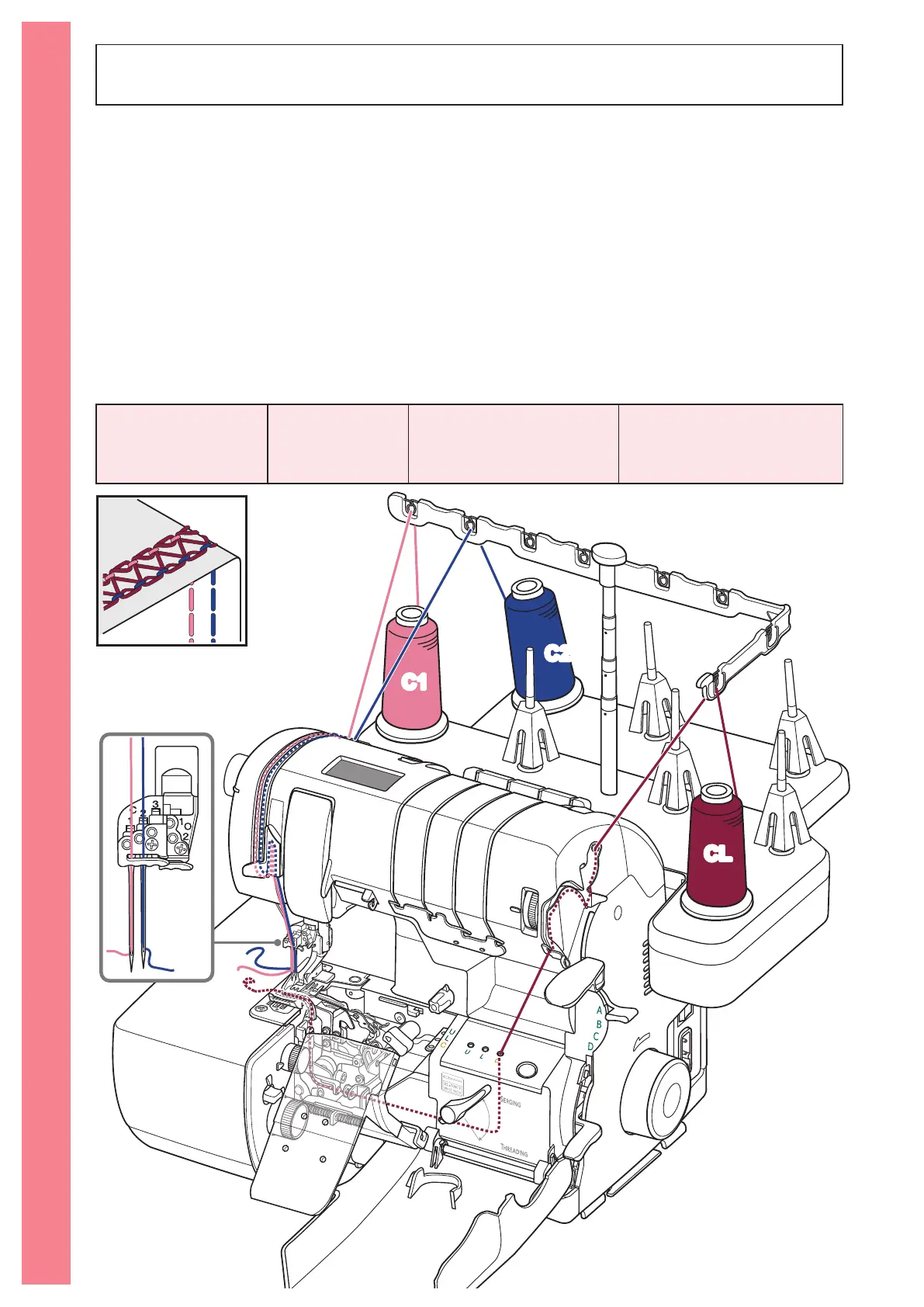 Instructions for Chain Looper port, Chain Needle(s) threading (See pages 19, 22, 24).