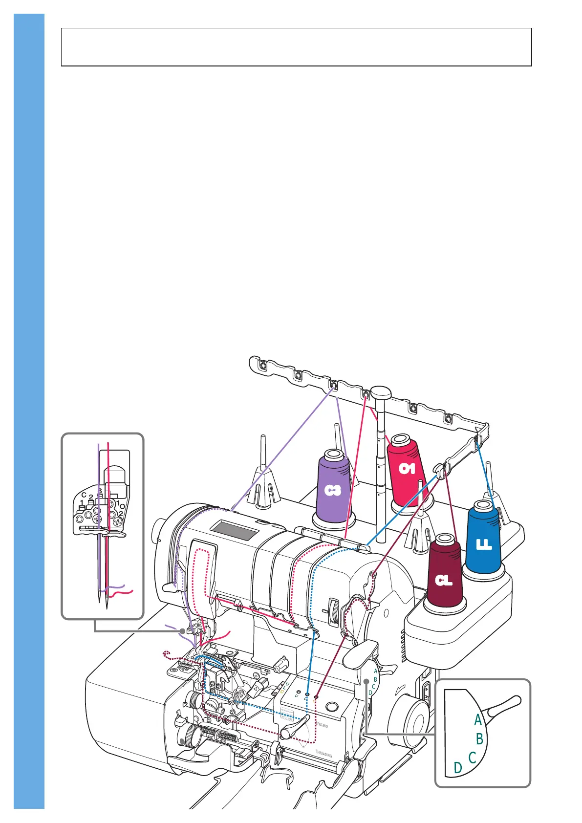 Instructions for Upper/ Lower, Chain looper port, Overlock /Chain Needle(s) threading (See