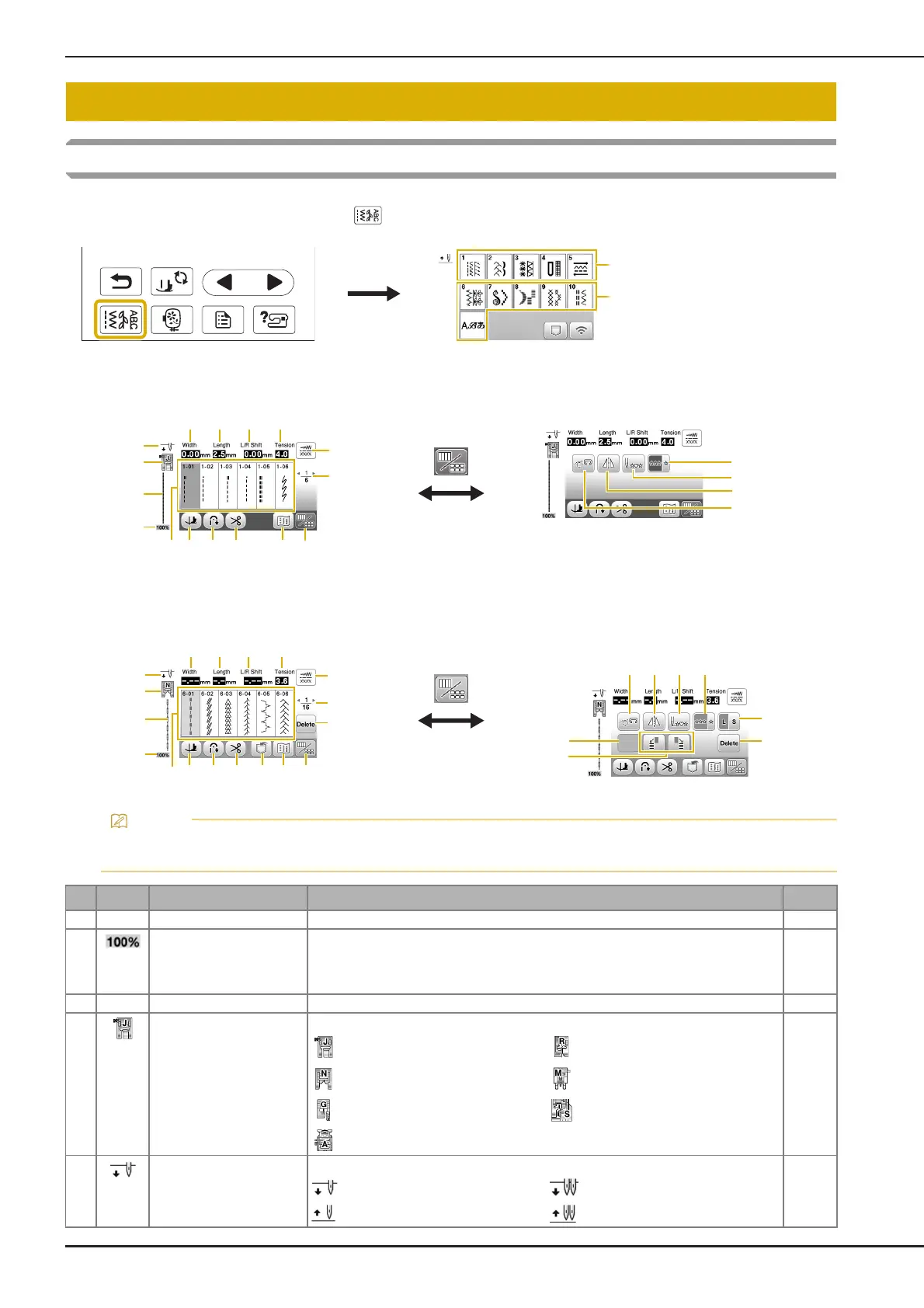 • Some editing functions cannot be used with certain stitch patterns. Only the functions for the displayed keys are