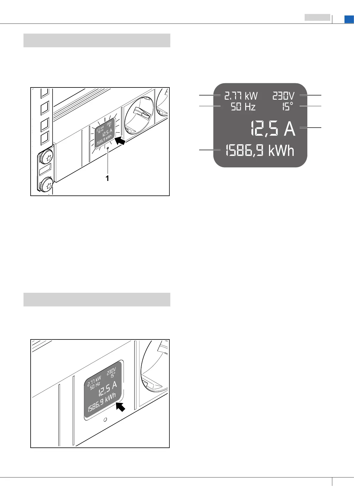 Drücken Sie den Taster (1) damit das Display (Pfeil)