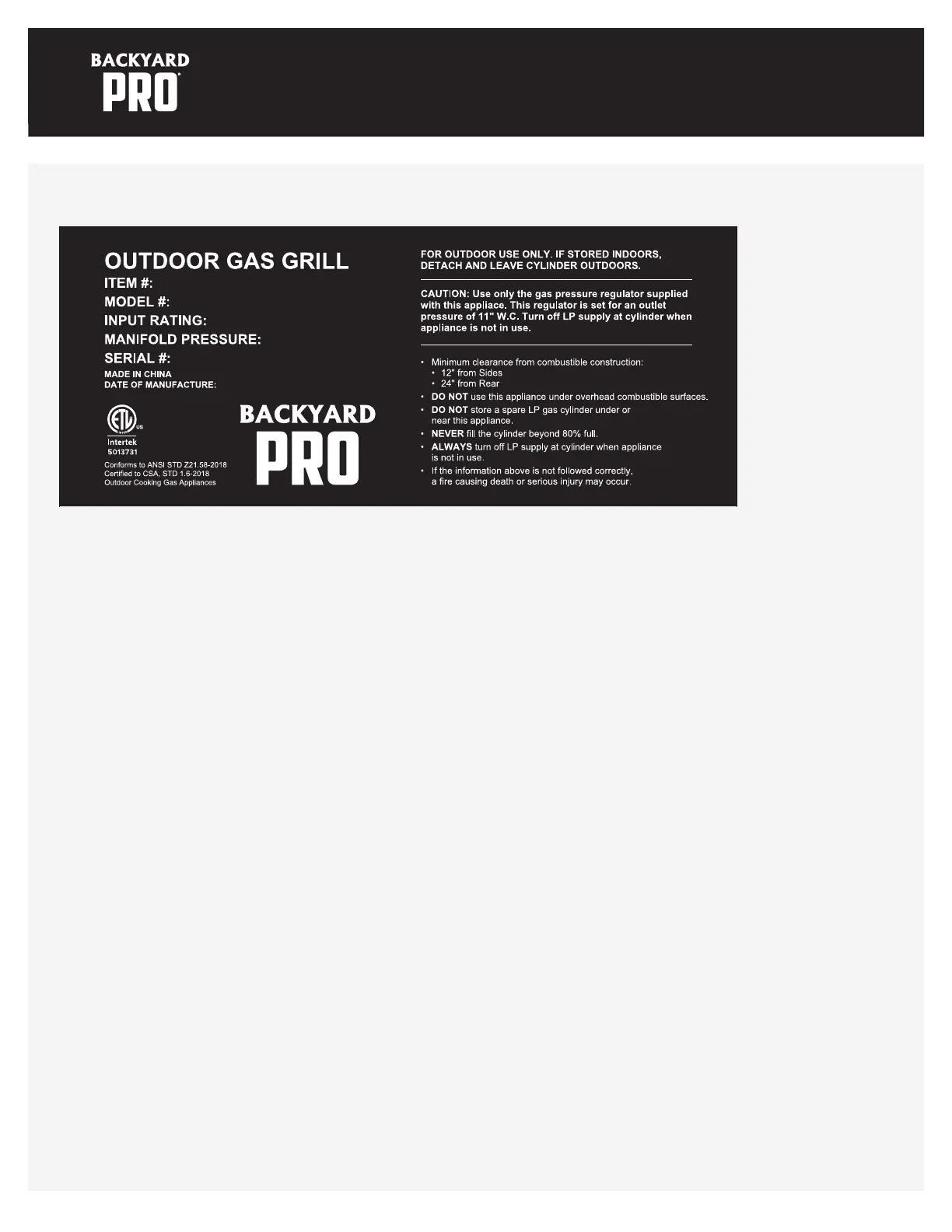 Bekijk gratis de handleiding van Backyard Pro 554LPGRD36, stel vragen en lees de antwoorden op veelvoorkomende problemen, of gebruik onze assistent om sneller informatie in de handleiding te vinden of uitleg te krijgen over specifieke functies.