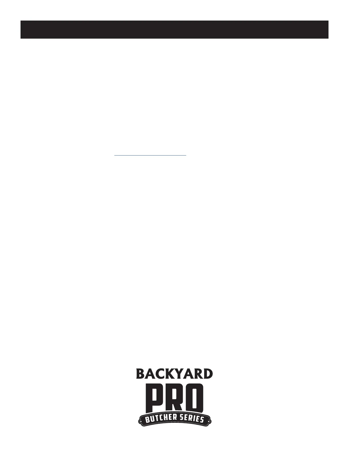 equipment. Only the equipment’s original purchaser may make a claim under this warranty. Backyard Pro Butcher Series