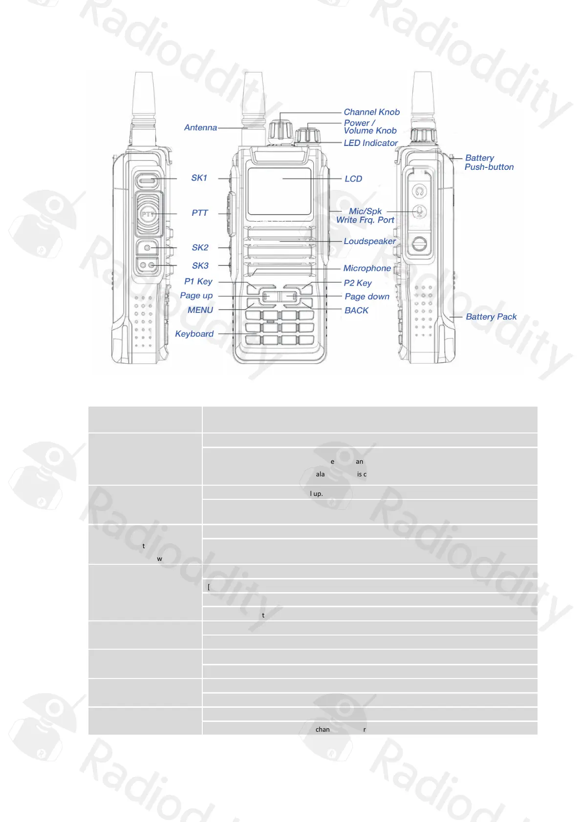 Switch between transmission and recepon; when transming, press this buon and speak to the