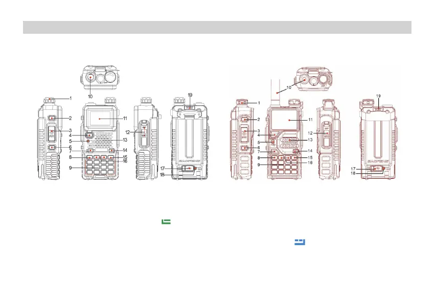 1. Power/Volume knob 2.SK1- Broadcast FM and Alarm key 3. PTT key