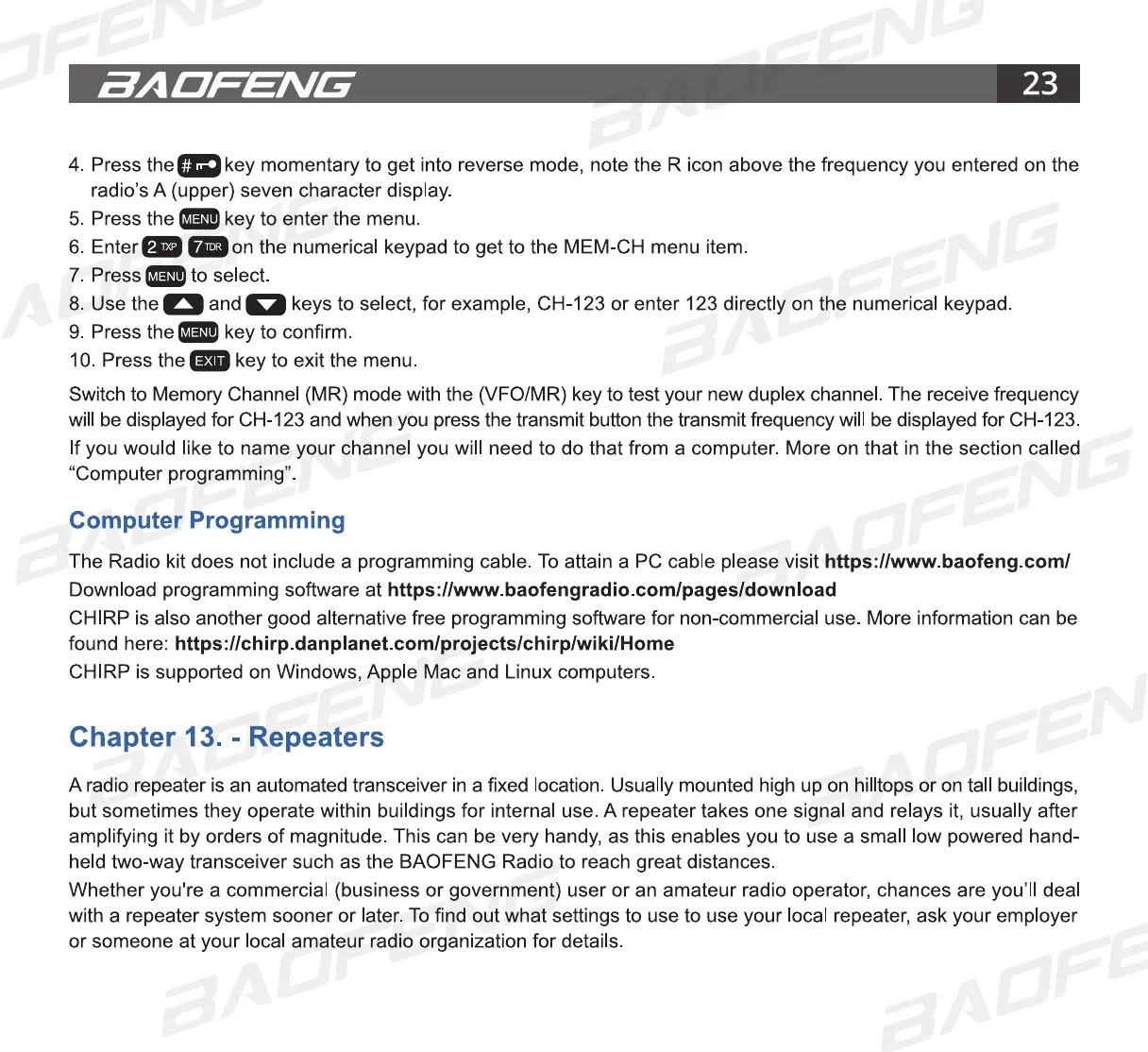 Bekijk gratis de handleiding van Baofeng UV-5RTP, stel vragen en lees de antwoorden op veelvoorkomende problemen, of gebruik onze assistent om sneller informatie in de handleiding te vinden of uitleg te krijgen over specifieke functies.