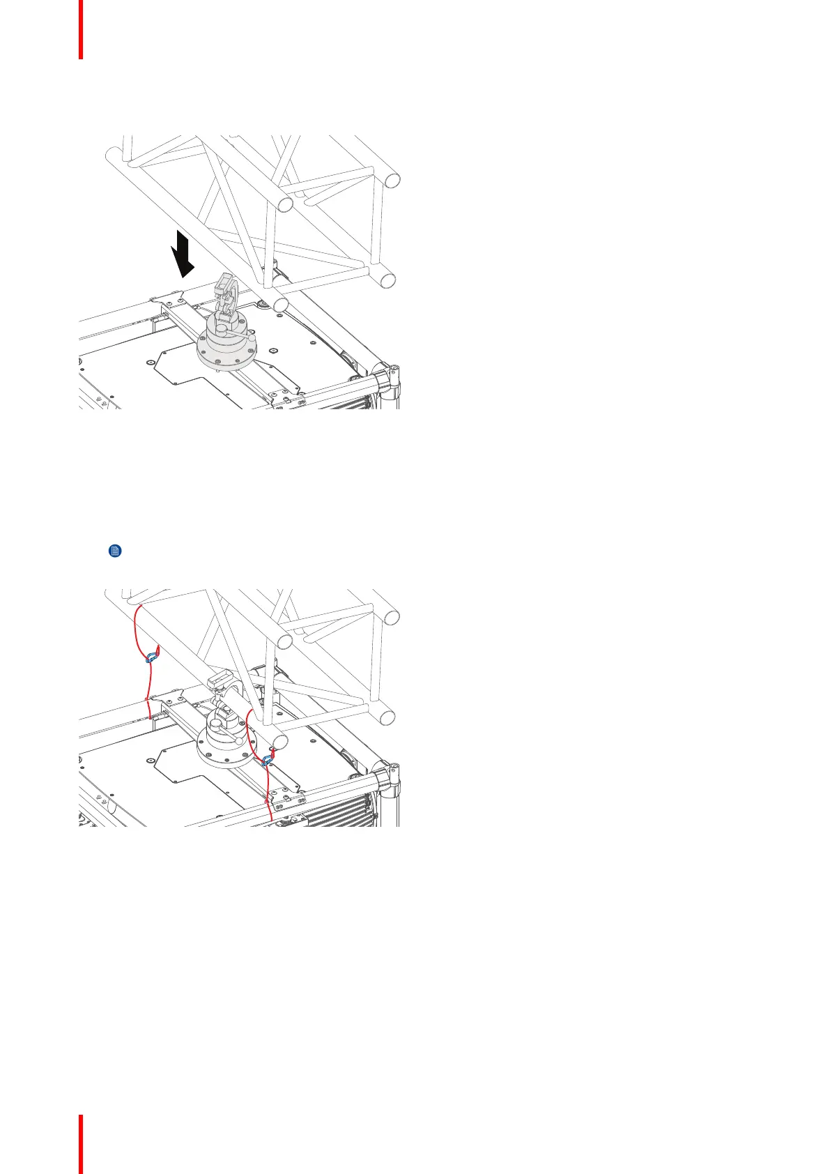 Note: Mount the 2 safety cables in such a way that when something goes wrong, the projector cannot