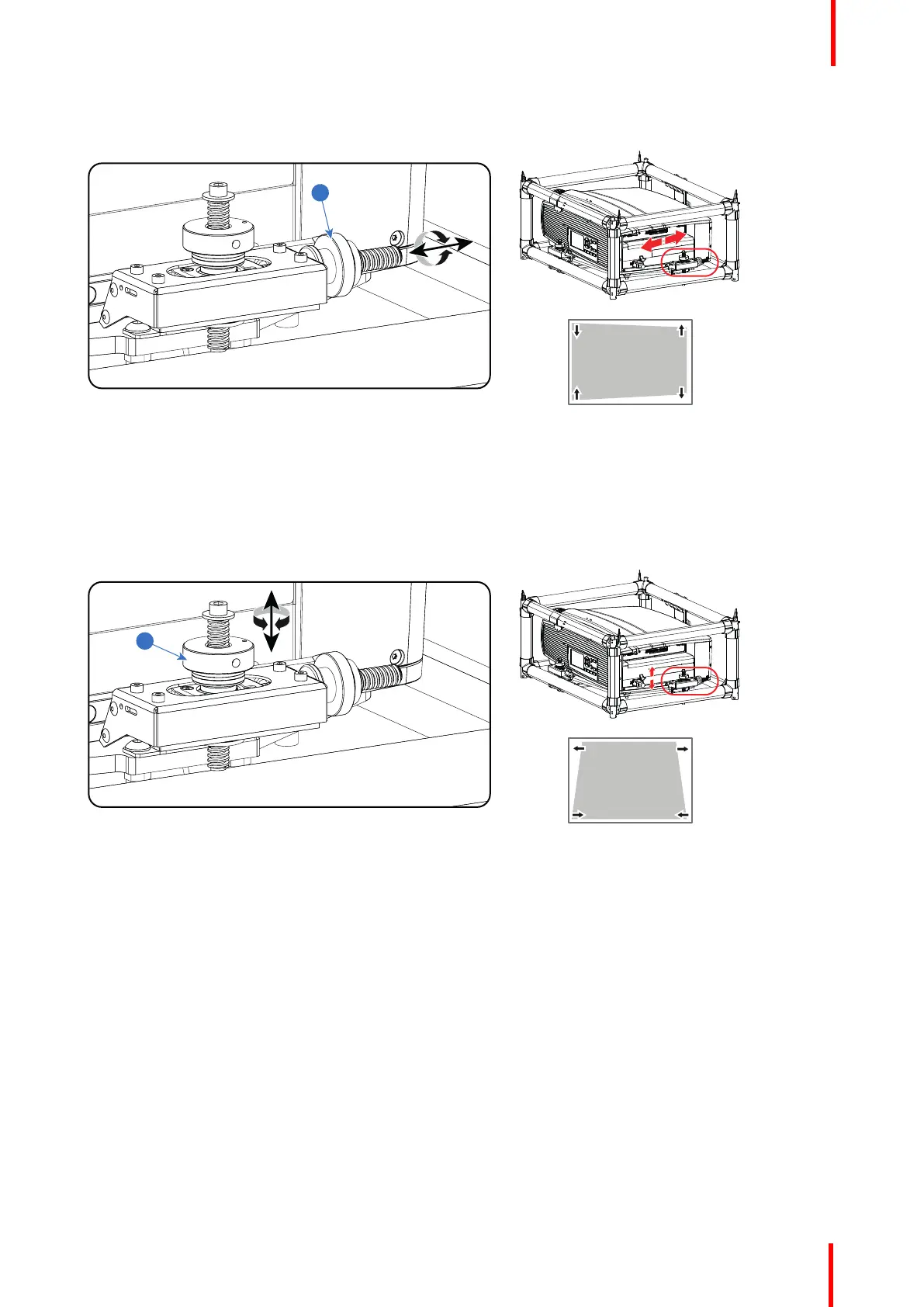 1. Turn the tilt adjustment knob (1) at the back to lift the projector up or down.