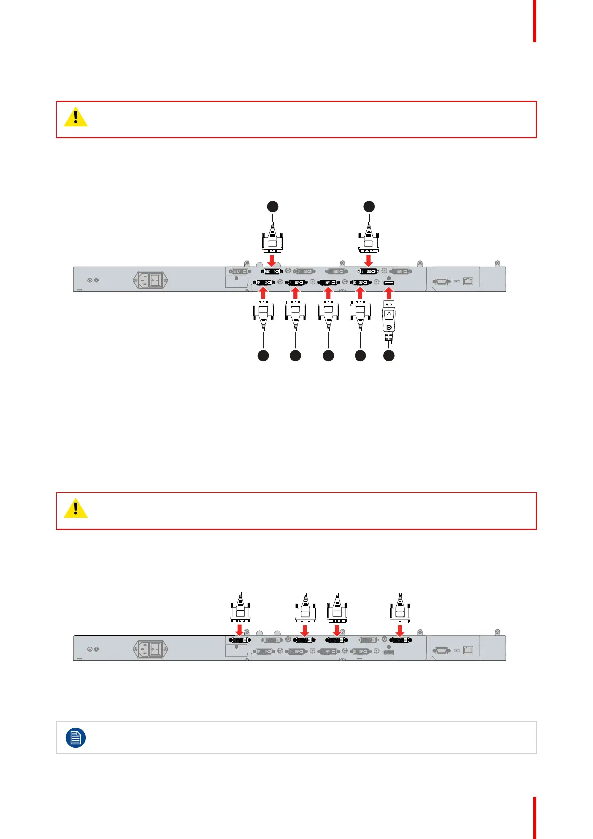 1. Sluit de beschikbare beeldscherm(en) met behulp van de geschikte videokabel(s) aan op de