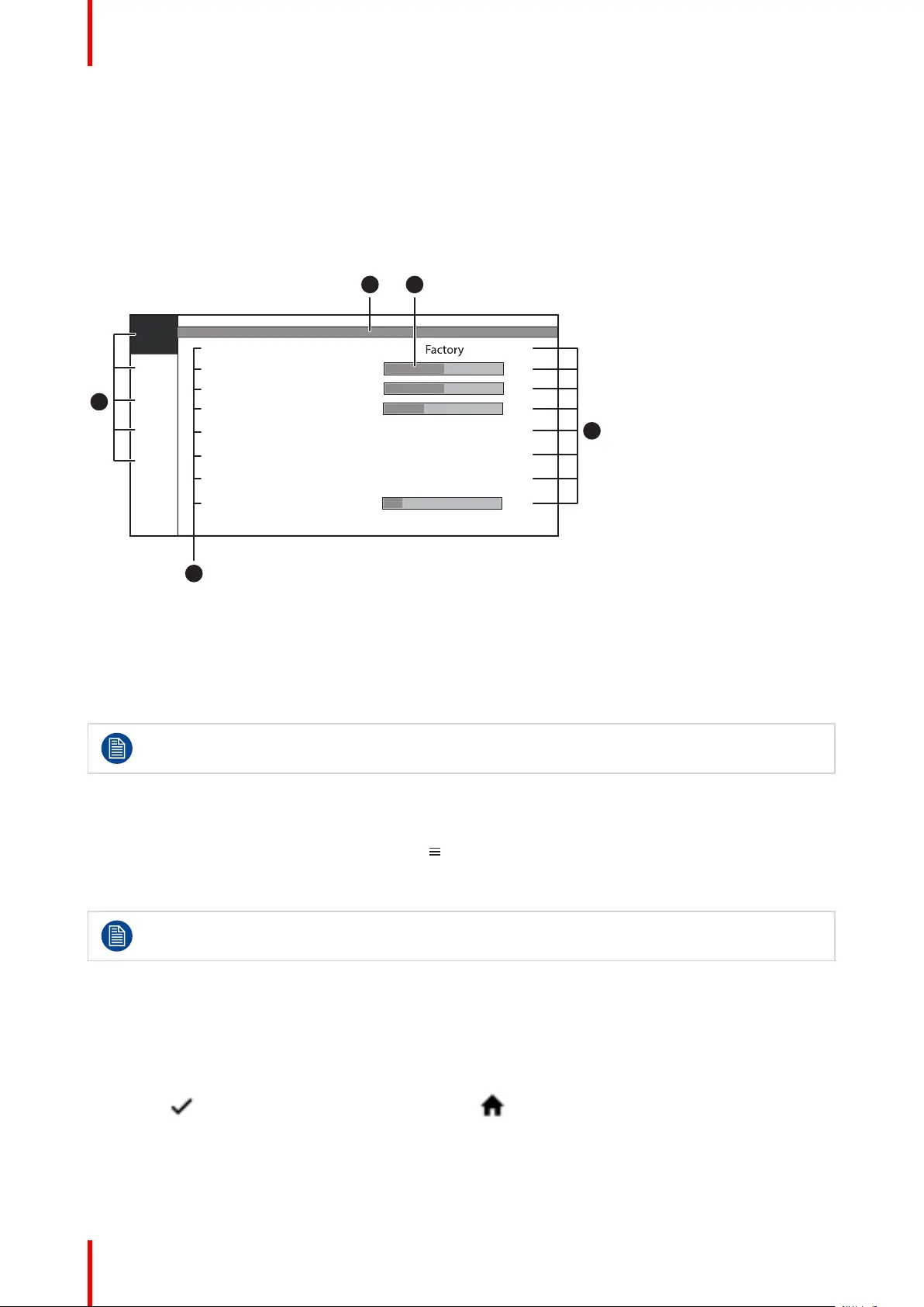 • Wanneer het OSD-menu geactiveerd is, verschijnt een afzonderlijk navigatiemenu net boven het voorste