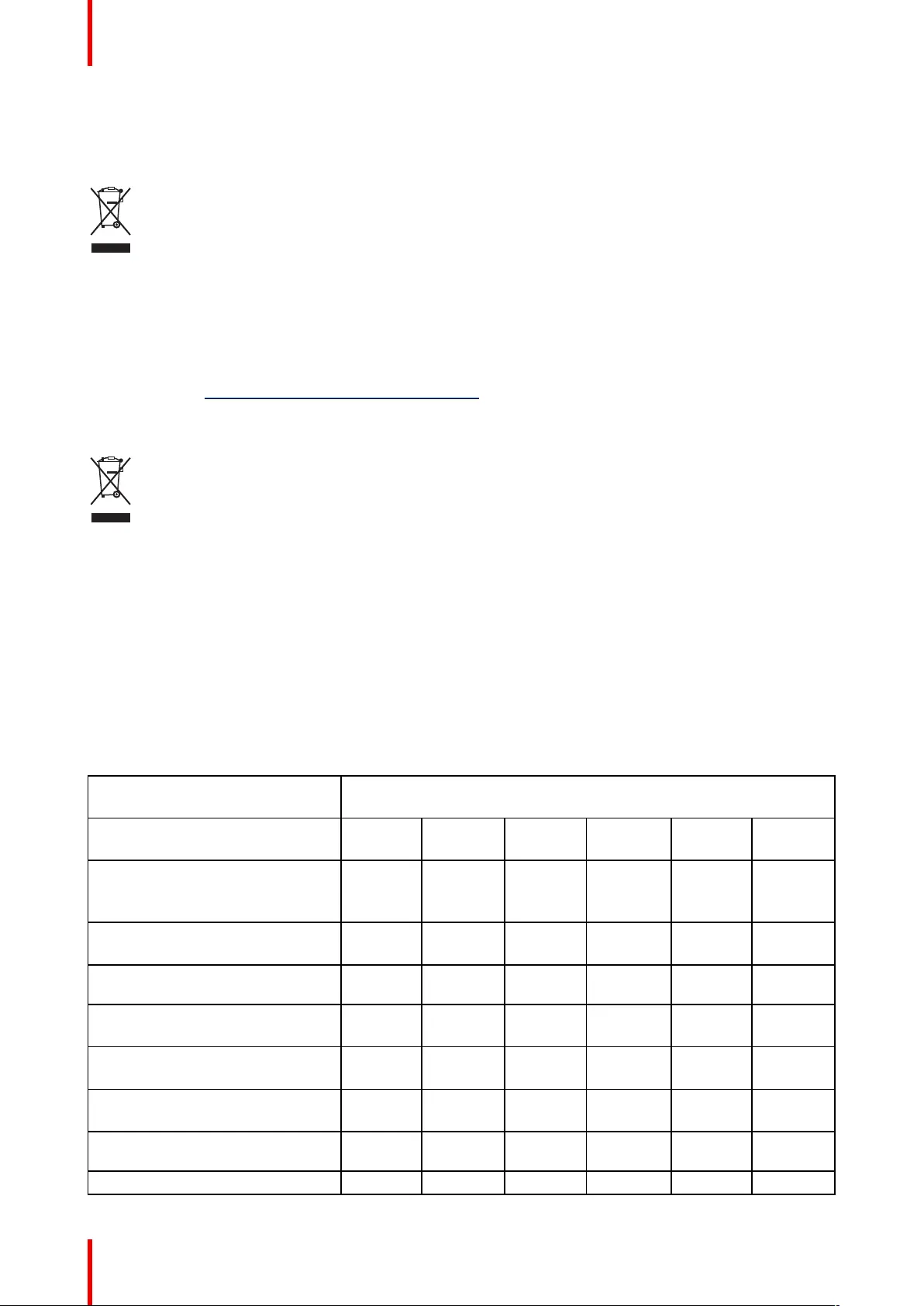 Barco产品中可能包含的有毒和/或有害物质的名称和含量。中国大陆RoHS指令包含在中国信息产业部MCV标