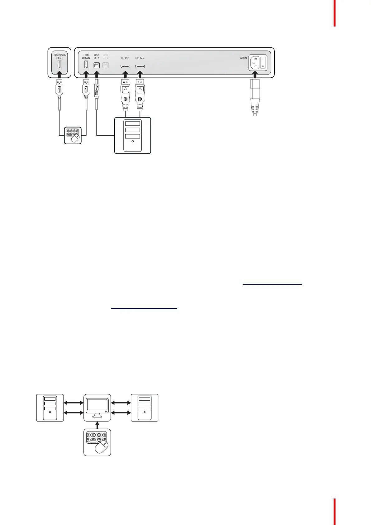 DisplayPort-kabel. Wanneer u een USB-kabel van uw beeldscherm op elk van de twee werkstations aansluit,